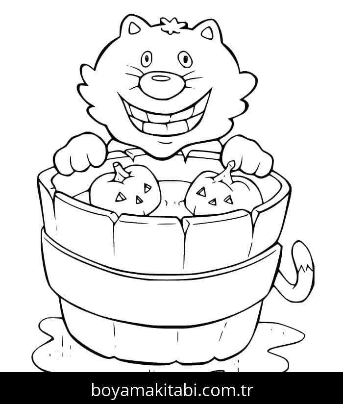 Cadılar Bayramı Kedisi Boyama Sayfası