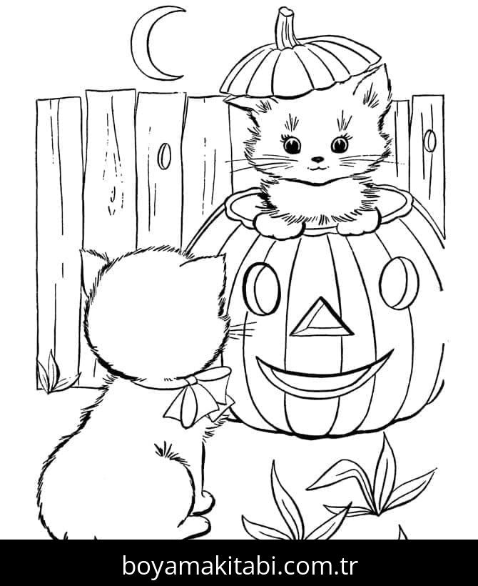 Cadılar Bayramı Kedisi Boyama Sayfası