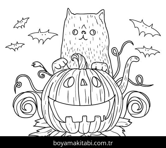 Cadılar Bayramı Kedisi Boyama Sayfası