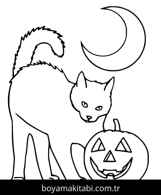 Cadılar Bayramı Kedisi Boyama Sayfası