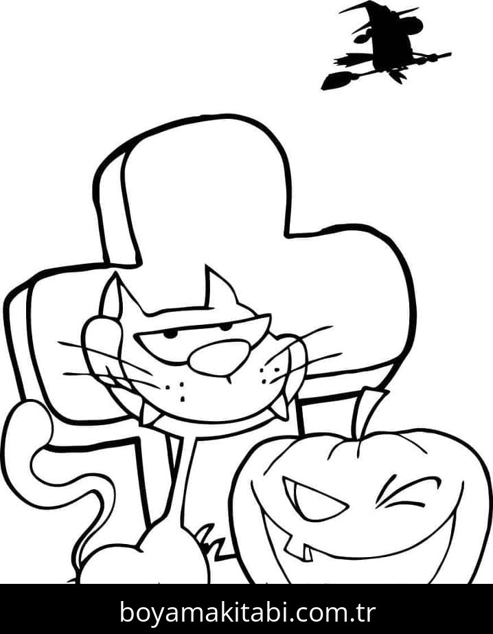 Cadılar Bayramı Kedisi Boyama Sayfası