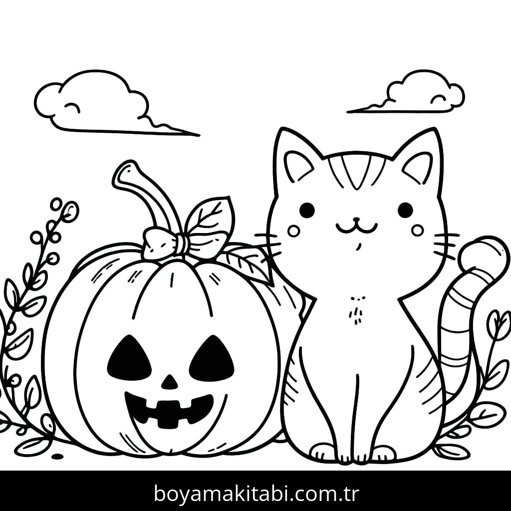 Cadılar Bayramı Kedisi Boyama Sayfası