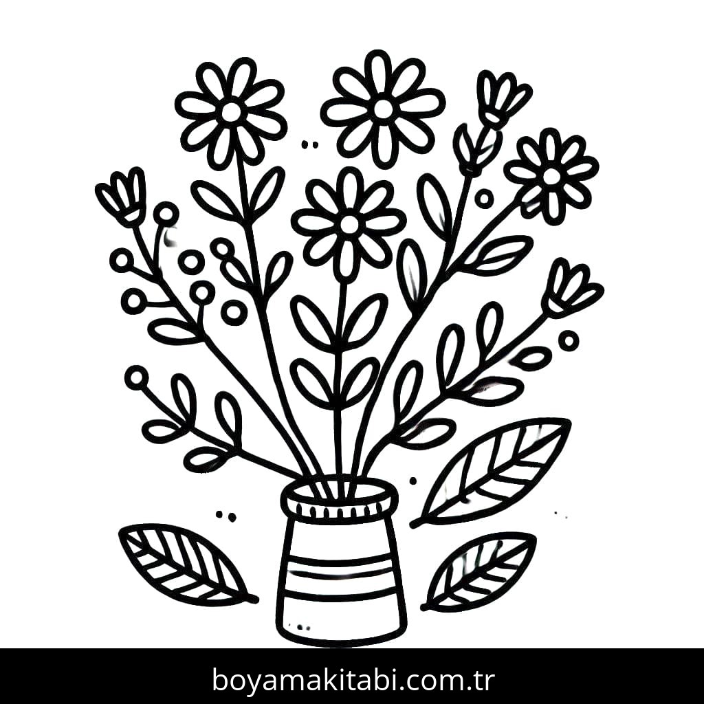 Çiçek temalı bu boyama sayfası çocuklar için boyama çalışması ve yaratıcılığı geliştirir bir etkinlik sunar. Ücretsiz olarak indirip yazdırabilir, evde keyifli bir boyama zamanı oluşturabilirsiniz.