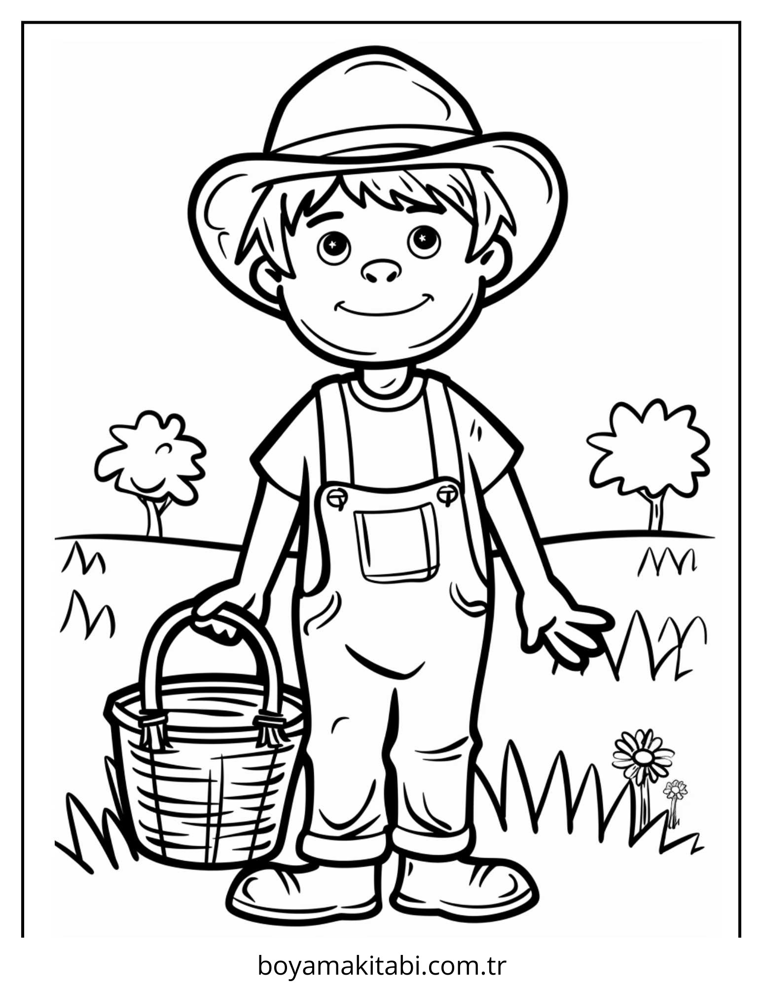 Çiftçi temalı bu boyama sayfası çocuklar için keyifli zaman ve renkli çizimler bir etkinlik sunar. Ücretsiz olarak indirip yazdırabilir, evde keyifli bir boyama zamanı oluşturabilirsiniz.