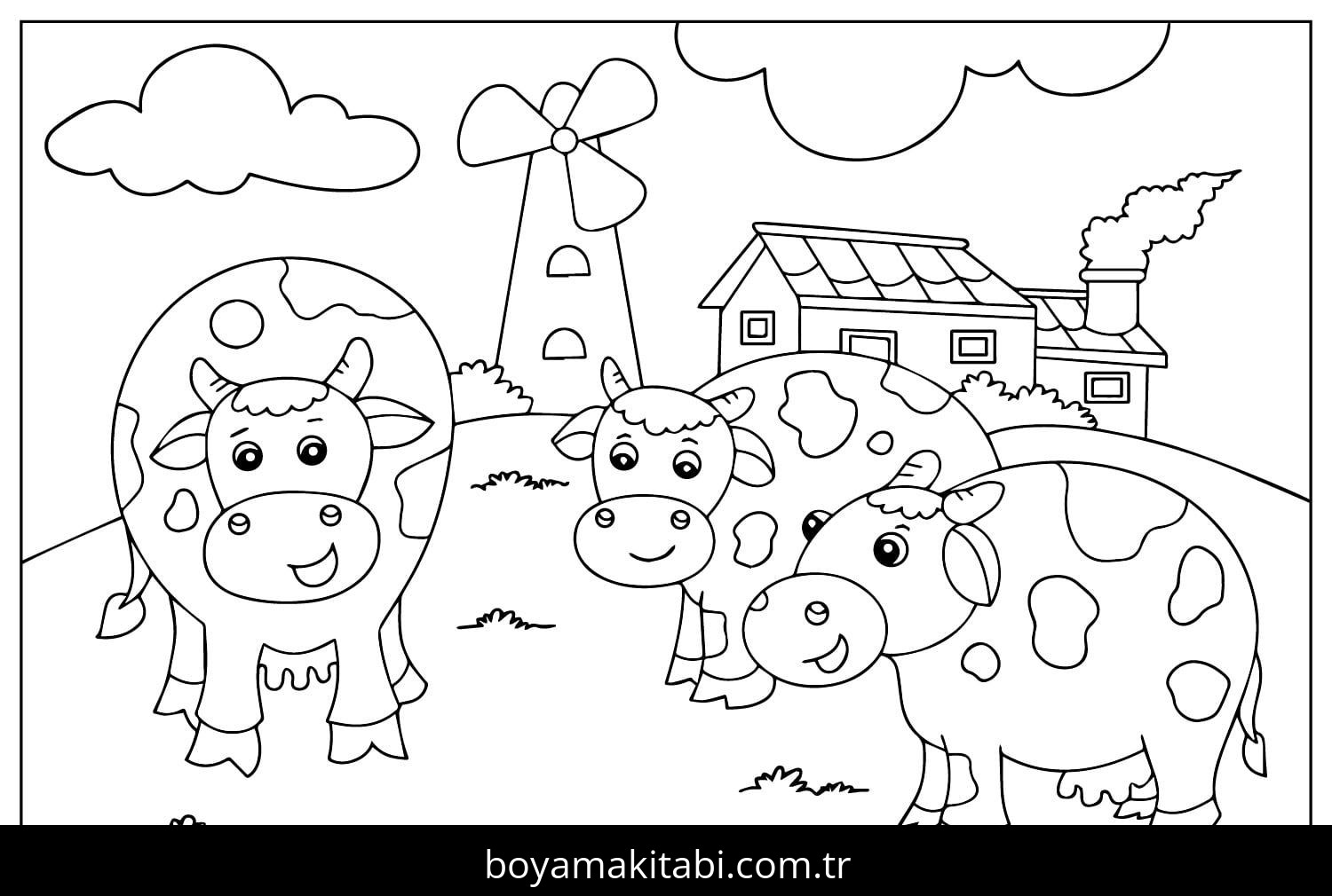 Çiftlik Boyama Sayfaları ve Eğlenceli Etkinlikler. Çiftlik Eğlenceli Boyama Sayfaları, Çiftlik boyama sayfası, coloring page, , Happy Cows On The Farm