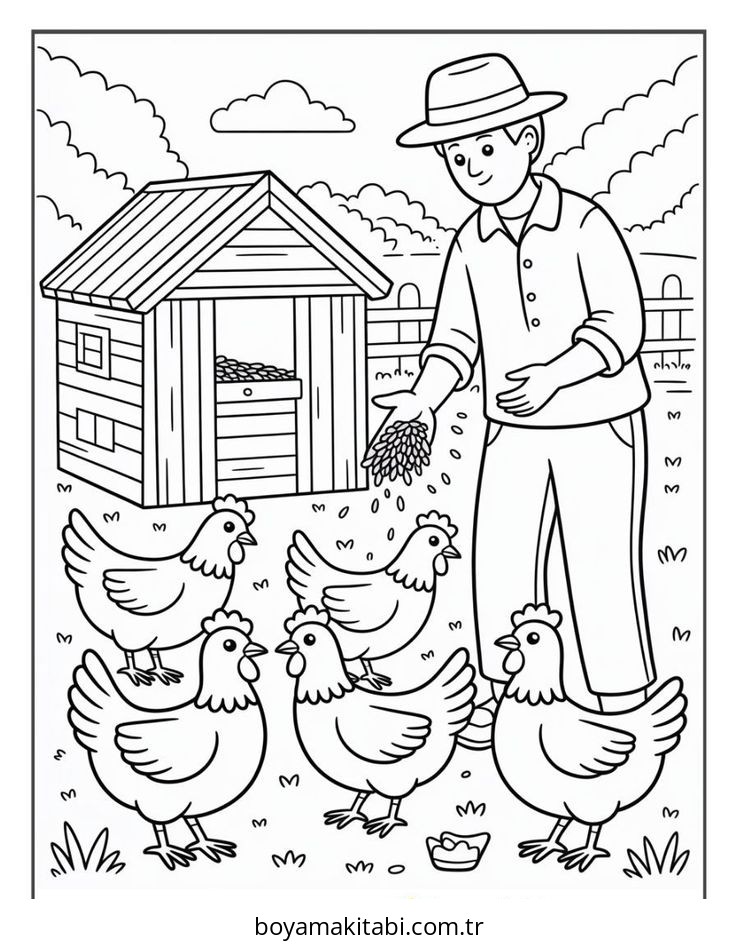 Çiftlik temalı bu boyama sayfası çocuklar için eğlenceli etkinlik ve el becerilerini geliştirir bir etkinlik sunar. Ücretsiz olarak indirip yazdırabilir, evde keyifli bir boyama zamanı oluşturabilirsiniz.