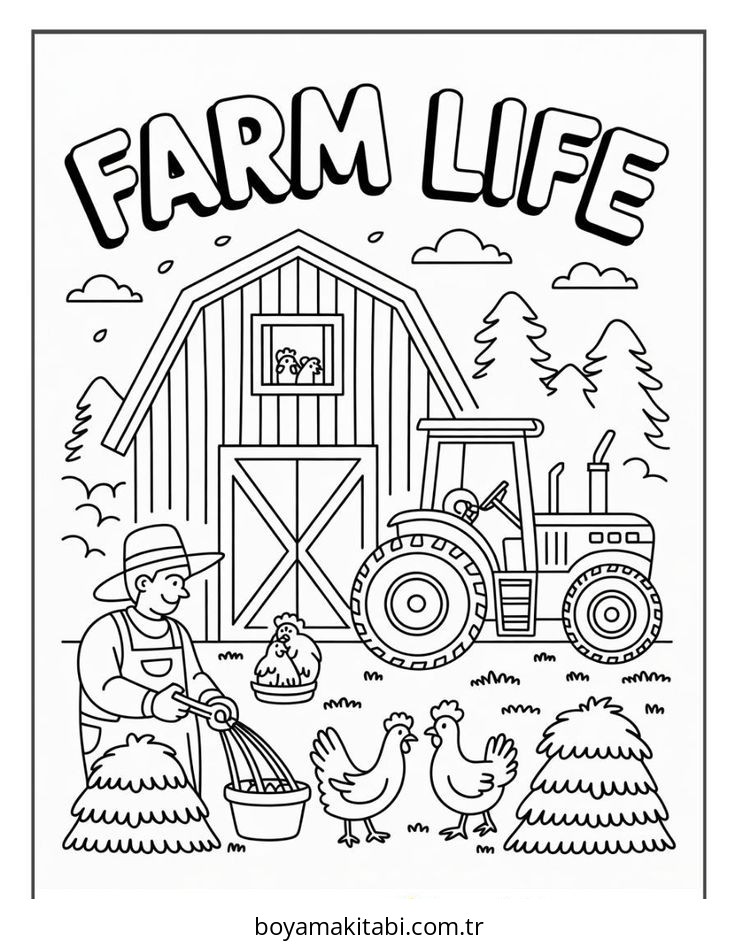 Çiftlik temalı bu boyama sayfası çocuklar için çocuk aktivitesi ve PDF indir bir etkinlik sunar. Ücretsiz olarak indirip yazdırabilir, evde keyifli bir boyama zamanı oluşturabilirsiniz.