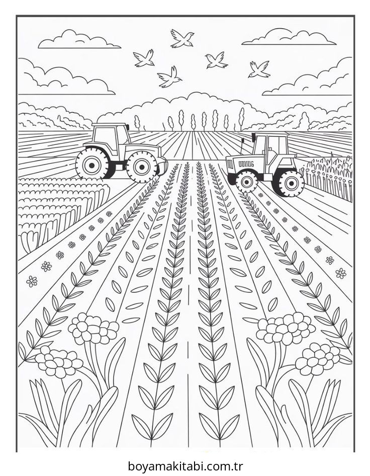 Çiftlik temalı bu boyama sayfası çocuklar için boyama çalışması ve yaratıcılığı geliştirir bir etkinlik sunar. Ücretsiz olarak indirip yazdırabilir, evde keyifli bir boyama zamanı oluşturabilirsiniz.