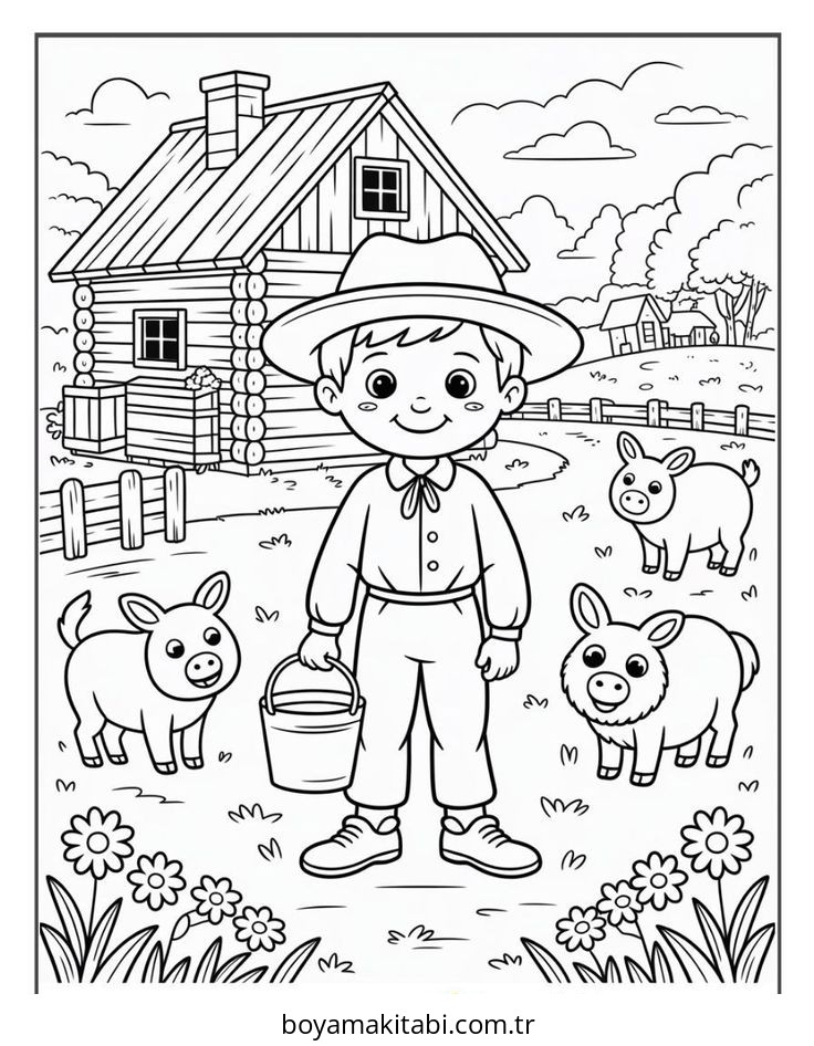 Çiftlik temalı bu boyama sayfası çocuklar için PDF indir ve sevimli karakter bir etkinlik sunar. Ücretsiz olarak indirip yazdırabilir, evde keyifli bir boyama zamanı oluşturabilirsiniz.