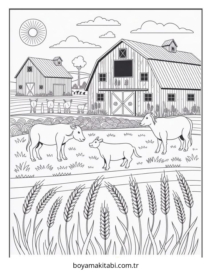 Çiftlik temalı bu boyama sayfası çocuklar için çocuk aktivitesi ve PDF indir bir etkinlik sunar. Ücretsiz olarak indirip yazdırabilir, evde keyifli bir boyama zamanı oluşturabilirsiniz.