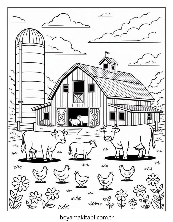 Çiftlik temalı bu boyama sayfası çocuklar için çocuklar için ve çizgi film temalı bir etkinlik sunar. Ücretsiz olarak indirip yazdırabilir, evde keyifli bir boyama zamanı oluşturabilirsiniz.