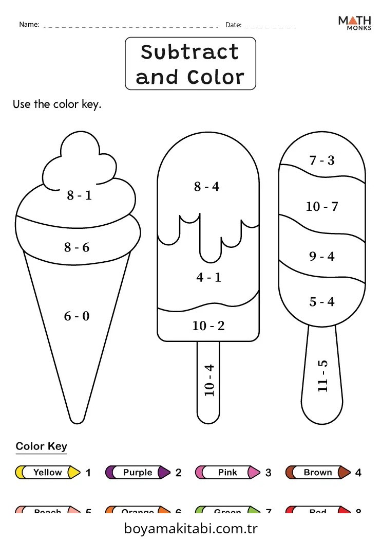 Çıkarma Yöntemiyle Renklendirme Boyama Sayfası