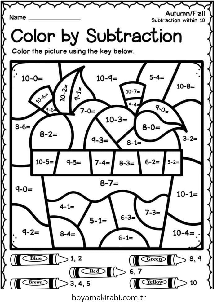 Çıkarma Yöntemiyle Renklendirme Boyama Sayfası