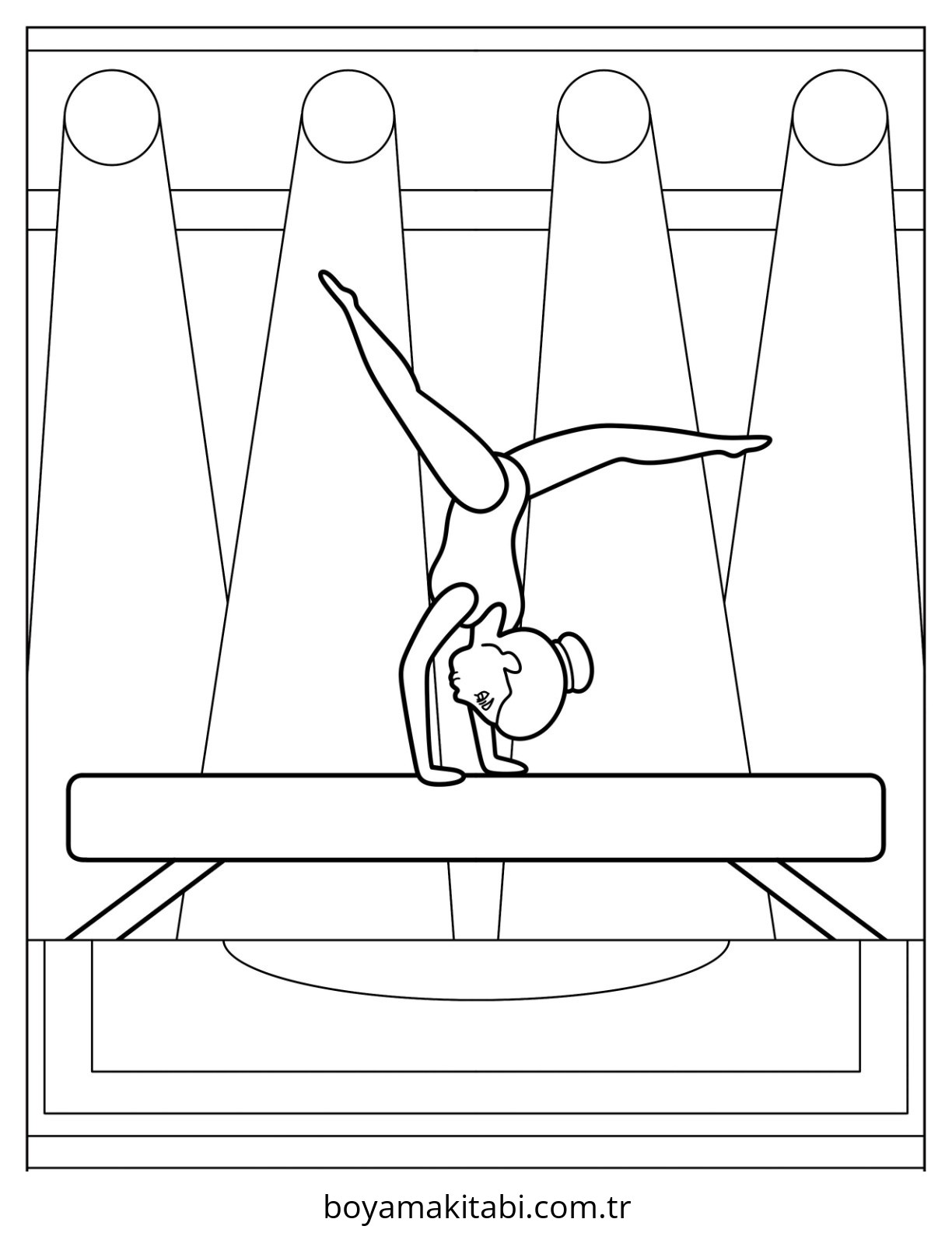 Cimnastik temalı bu boyama sayfası çocuklar için el becerilerini geliştirir ve boyama çalışması bir etkinlik sunar. Ücretsiz olarak indirip yazdırabilir, evde keyifli bir boyama zamanı oluşturabilirsiniz.