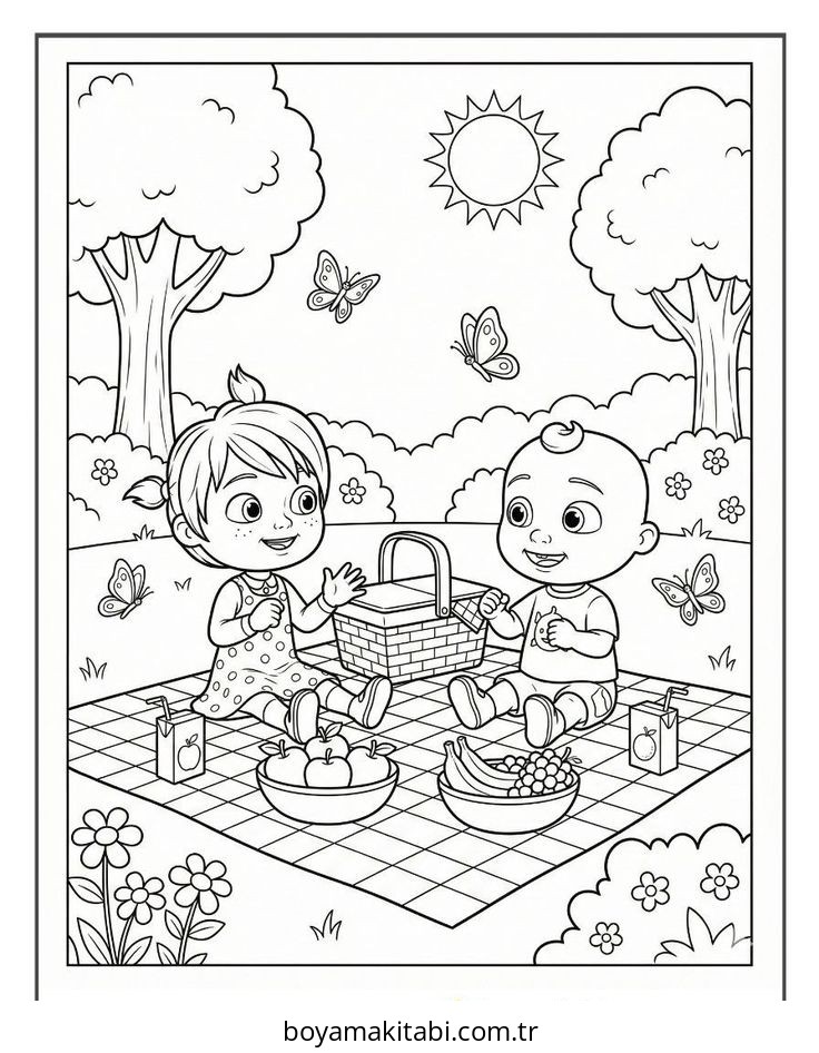CoComelon temalı bu boyama sayfası çocuklar için kolay boyama ve eğitici aktivite bir etkinlik sunar. Ücretsiz olarak indirip yazdırabilir, evde keyifli bir boyama zamanı oluşturabilirsiniz.