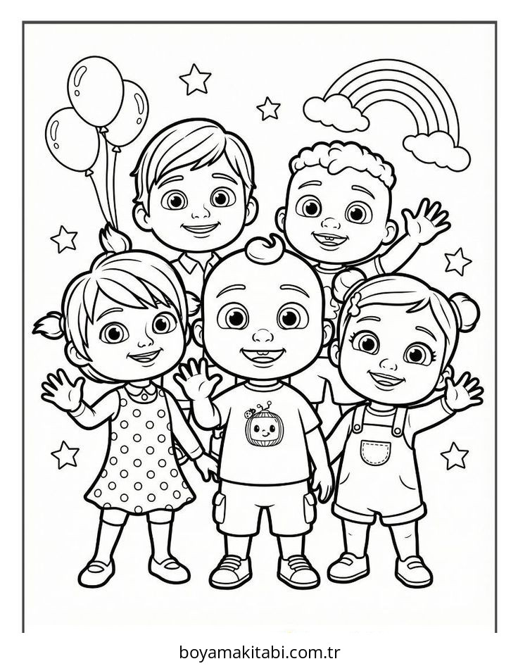 CoComelon temalı bu boyama sayfası çocuklar için okul öncesi ve evde etkinlik bir etkinlik sunar. Ücretsiz olarak indirip yazdırabilir, evde keyifli bir boyama zamanı oluşturabilirsiniz.