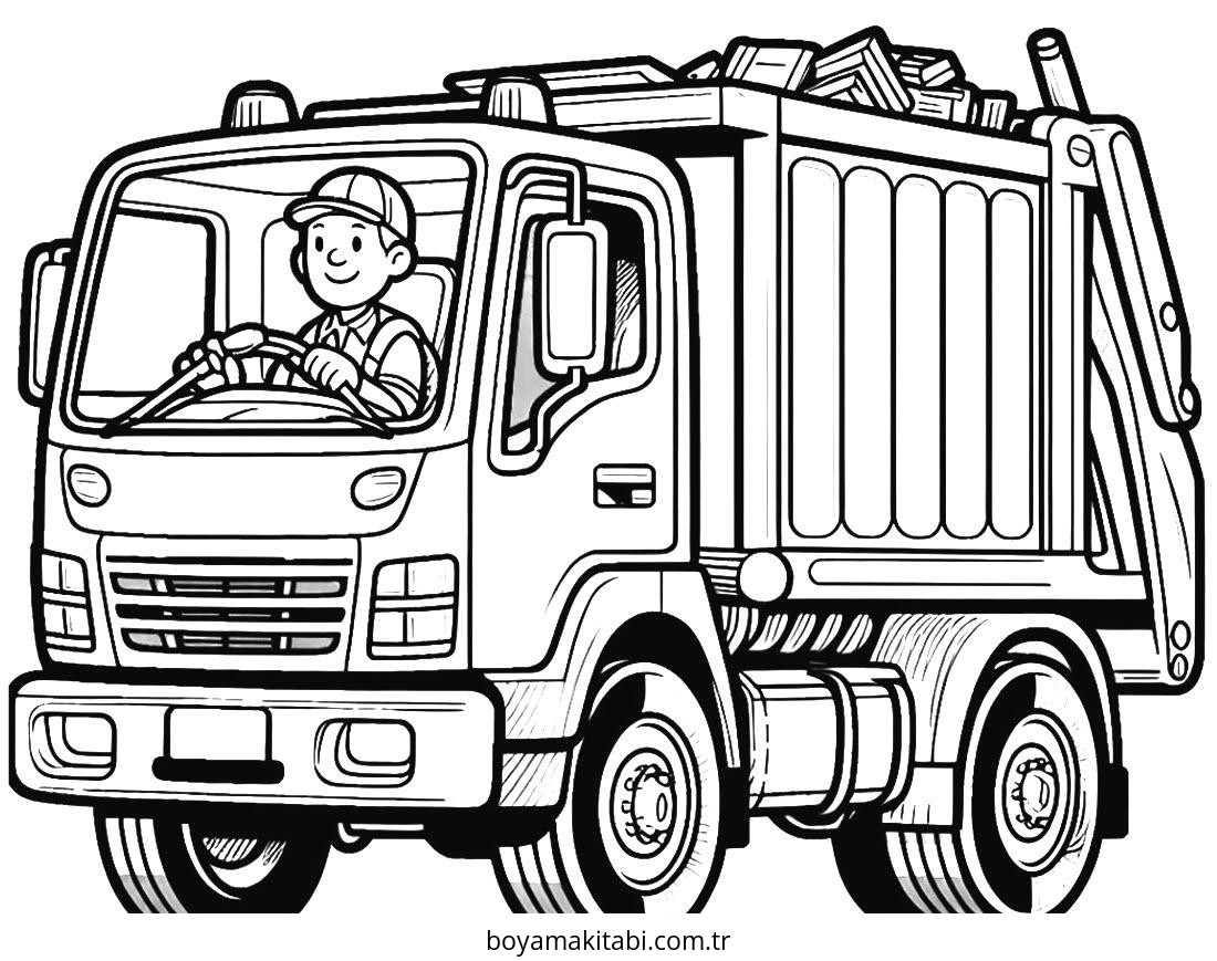 Çöp Kamyonu Boyama Sayfası