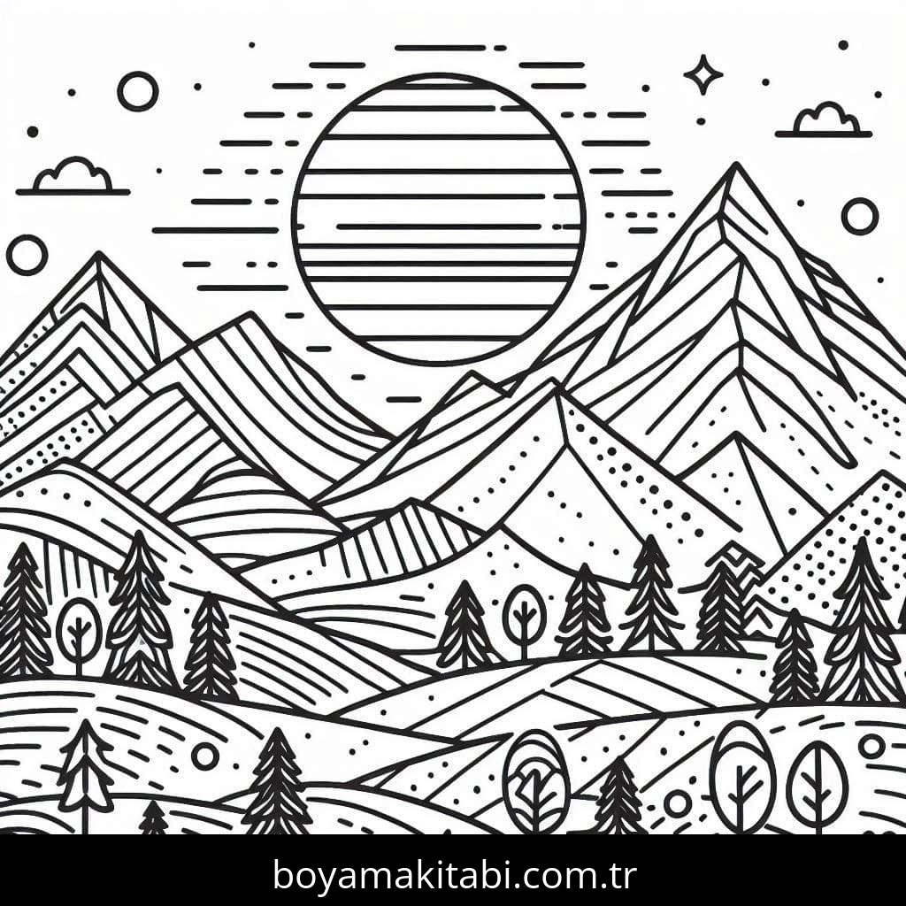 Dağ temalı bu boyama sayfası çocuklar için keyifli zaman ve renkli çizimler bir etkinlik sunar. Ücretsiz olarak indirip yazdırabilir, evde keyifli bir boyama zamanı oluşturabilirsiniz.