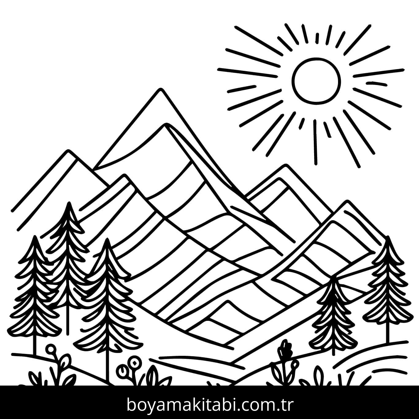 Dağ temalı bu boyama sayfası çocuklar için boyama çalışması ve yaratıcılığı geliştirir bir etkinlik sunar. Ücretsiz olarak indirip yazdırabilir, evde keyifli bir boyama zamanı oluşturabilirsiniz.
