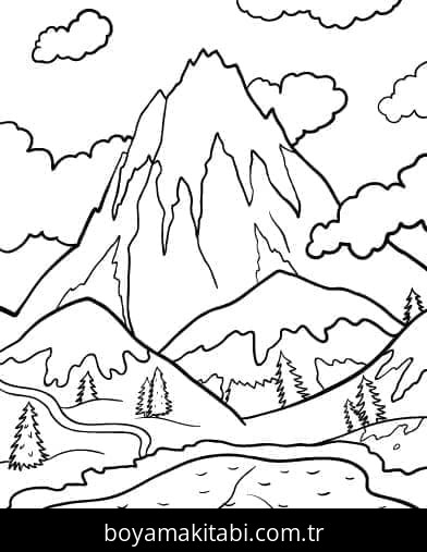 Dağ temalı bu boyama sayfası çocuklar için sanatsal çalışma ve çocuklar için bir etkinlik sunar. Ücretsiz olarak indirip yazdırabilir, evde keyifli bir boyama zamanı oluşturabilirsiniz.