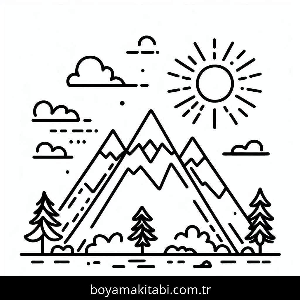 Dağ temalı bu boyama sayfası çocuklar için yaratıcılık ve eğlenceli etkinlik bir etkinlik sunar. Ücretsiz olarak indirip yazdırabilir, evde keyifli bir boyama zamanı oluşturabilirsiniz.