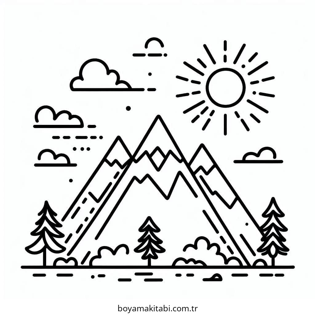 Dağ temalı bu boyama sayfası çocuklar için çizgi film temalı ve basit çizim bir etkinlik sunar. Ücretsiz olarak indirip yazdırabilir, evde keyifli bir boyama zamanı oluşturabilirsiniz.