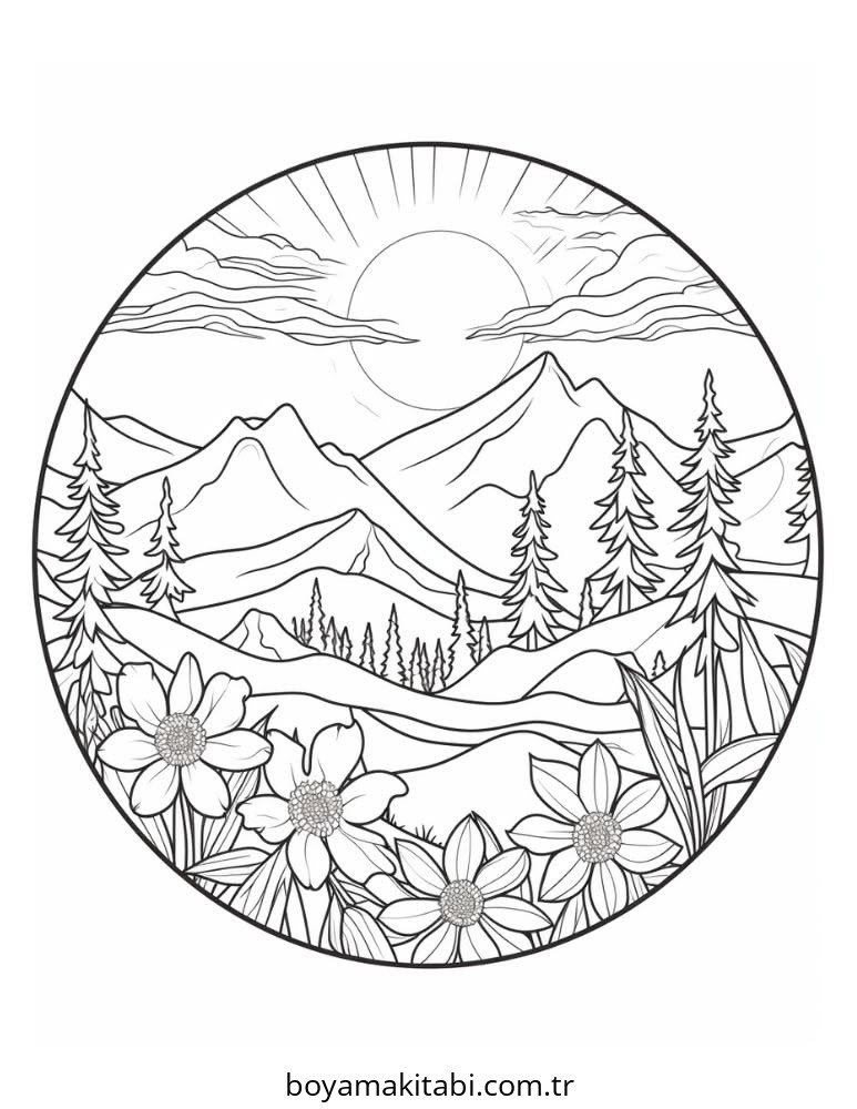 Dağ temalı bu boyama sayfası çocuklar için el becerilerini geliştirir ve boyama çalışması bir etkinlik sunar. Ücretsiz olarak indirip yazdırabilir, evde keyifli bir boyama zamanı oluşturabilirsiniz.