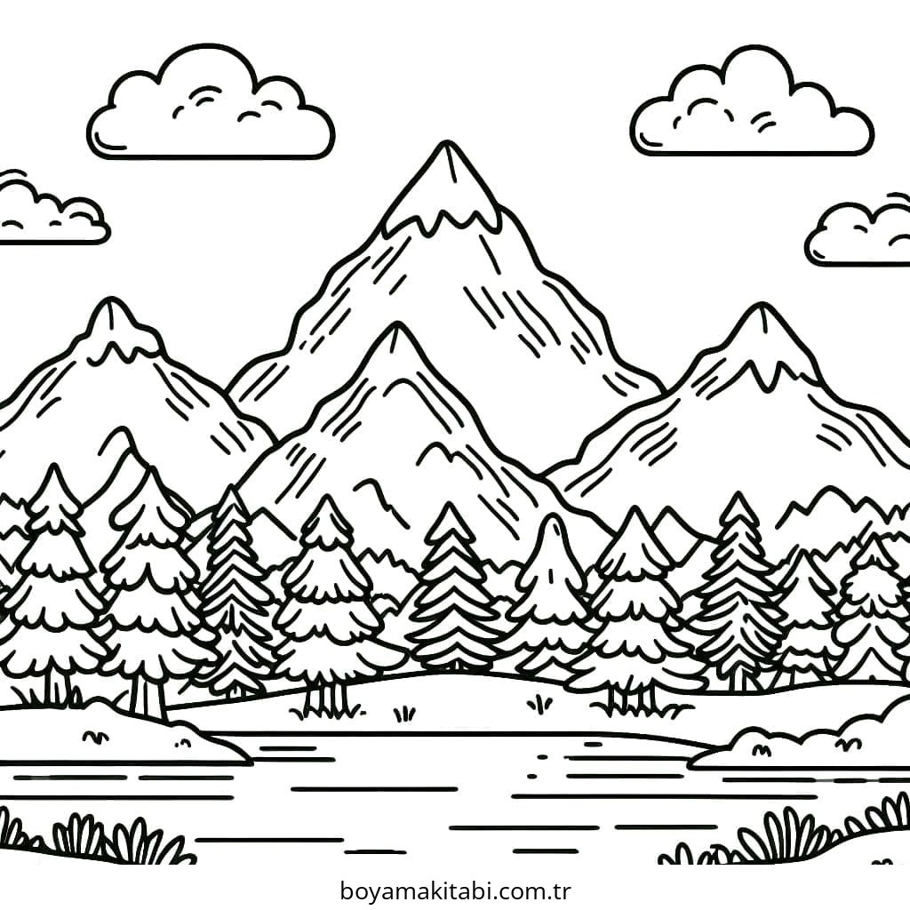 Dağ temalı bu boyama sayfası çocuklar için sanatsal çalışma ve çocuklar için bir etkinlik sunar. Ücretsiz olarak indirip yazdırabilir, evde keyifli bir boyama zamanı oluşturabilirsiniz.