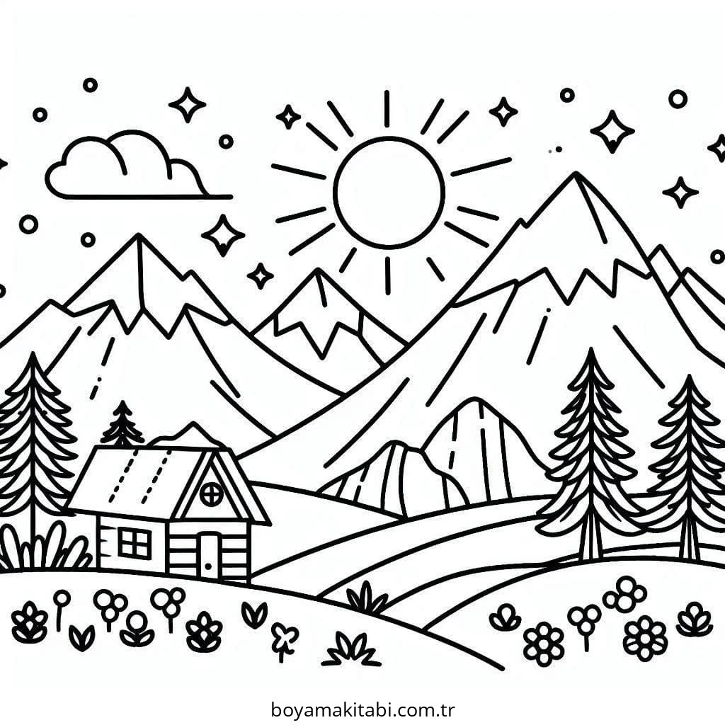 Dağ temalı bu boyama sayfası çocuklar için eğlenceli etkinlik ve el becerilerini geliştirir bir etkinlik sunar. Ücretsiz olarak indirip yazdırabilir, evde keyifli bir boyama zamanı oluşturabilirsiniz.