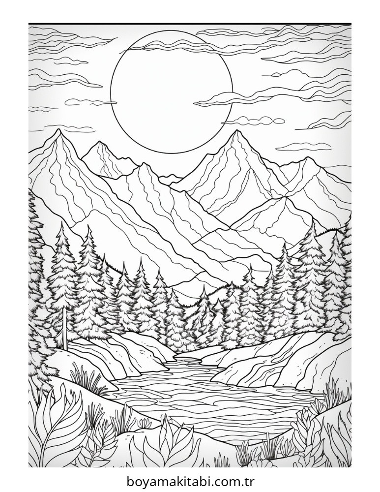 Dağ temalı bu boyama sayfası çocuklar için okul öncesi ve evde etkinlik bir etkinlik sunar. Ücretsiz olarak indirip yazdırabilir, evde keyifli bir boyama zamanı oluşturabilirsiniz.
