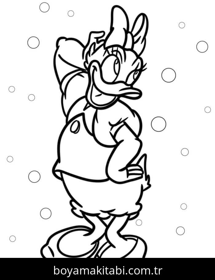 Daisy Duck temalı bu boyama sayfası çocuklar için renkli çizimler ve okul öncesi bir etkinlik sunar. Ücretsiz olarak indirip yazdırabilir, evde keyifli bir boyama zamanı oluşturabilirsiniz.