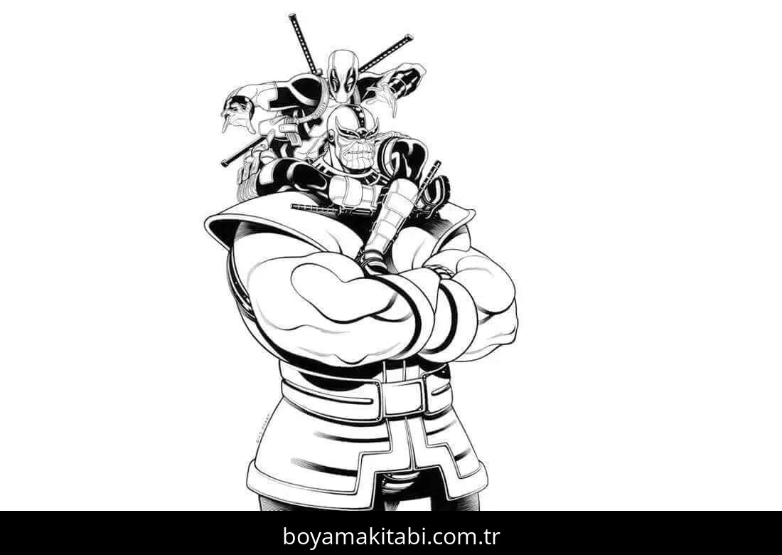 Deadpool temalı bu boyama sayfası çocuklar için çizgi film temalı ve basit çizim bir etkinlik sunar. Ücretsiz olarak indirip yazdırabilir, evde keyifli bir boyama zamanı oluşturabilirsiniz.