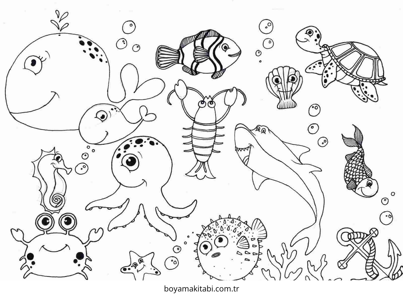 Deniz Hayvanları temalı bu boyama sayfası çocuklar için el becerilerini geliştirir ve boyama çalışması bir etkinlik sunar. Ücretsiz olarak indirip yazdırabilir, evde keyifli bir boyama zamanı oluşturabilirsiniz.