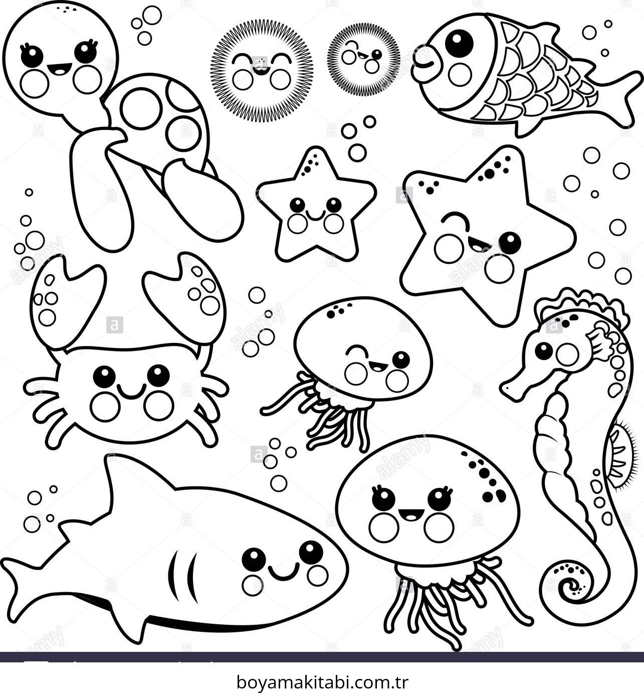 Deniz Hayvanları temalı bu boyama sayfası çocuklar için renkli çizimler ve okul öncesi bir etkinlik sunar. Ücretsiz olarak indirip yazdırabilir, evde keyifli bir boyama zamanı oluşturabilirsiniz.