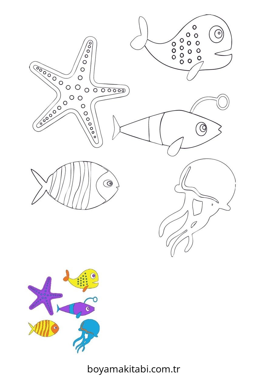 Deniz Hayvanları Boyama Sayfası