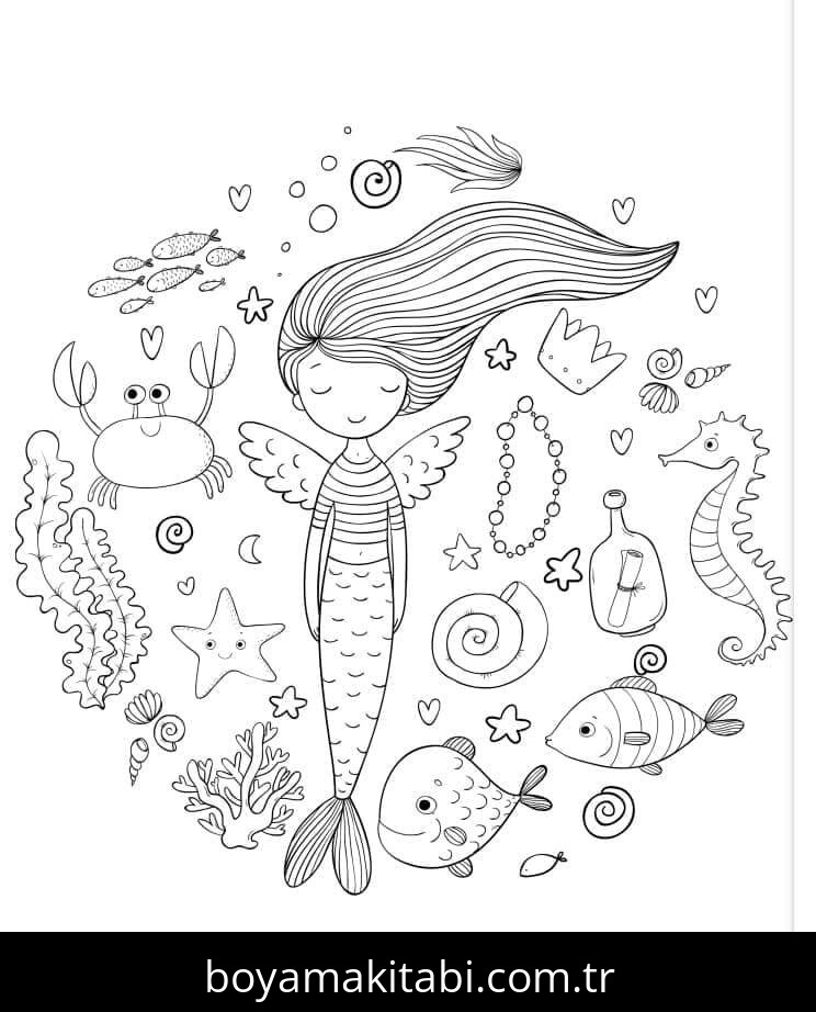 Deniz Kızı temalı bu boyama sayfası çocuklar için eğitici aktivite ve yaratıcılık bir etkinlik sunar. Ücretsiz olarak indirip yazdırabilir, evde keyifli bir boyama zamanı oluşturabilirsiniz.