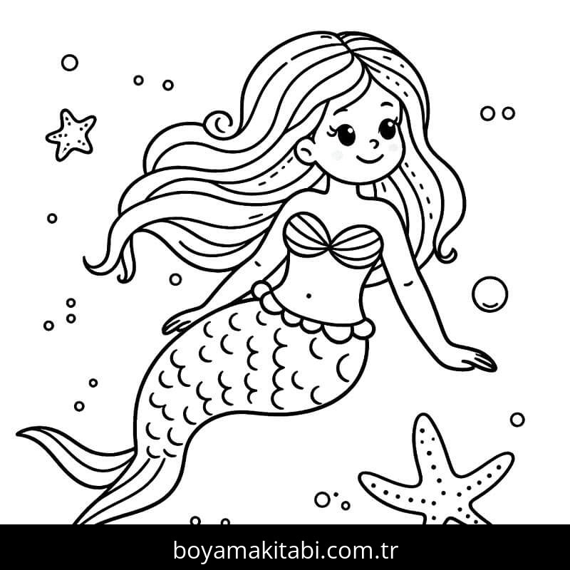 Deniz Kızı temalı bu boyama sayfası çocuklar için PDF indir ve sevimli karakter bir etkinlik sunar. Ücretsiz olarak indirip yazdırabilir, evde keyifli bir boyama zamanı oluşturabilirsiniz.