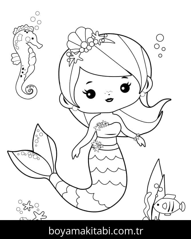 Deniz Kızı temalı bu boyama sayfası çocuklar için kolay boyama ve eğitici aktivite bir etkinlik sunar. Ücretsiz olarak indirip yazdırabilir, evde keyifli bir boyama zamanı oluşturabilirsiniz.