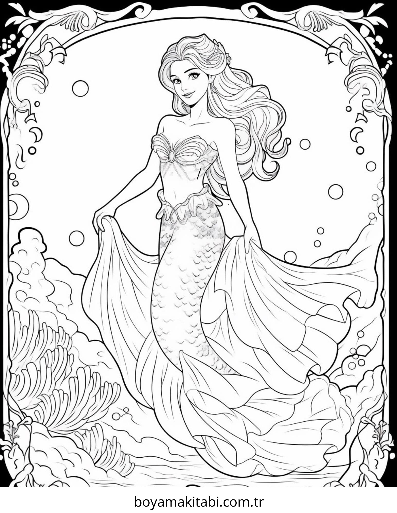 Deniz Kızı temalı bu boyama sayfası çocuklar için boyama çalışması ve yaratıcılığı geliştirir bir etkinlik sunar. Ücretsiz olarak indirip yazdırabilir, evde keyifli bir boyama zamanı oluşturabilirsiniz.