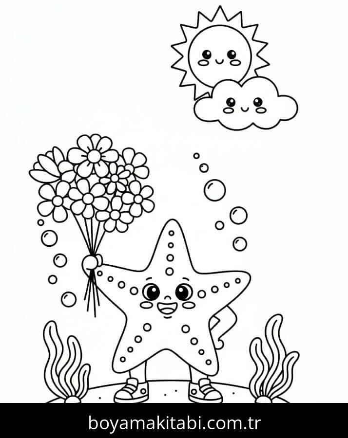 Deniz Yıldızı temalı bu boyama sayfası çocuklar için sevimli karakter ve sanatsal çalışma bir etkinlik sunar. Ücretsiz olarak indirip yazdırabilir, evde keyifli bir boyama zamanı oluşturabilirsiniz.