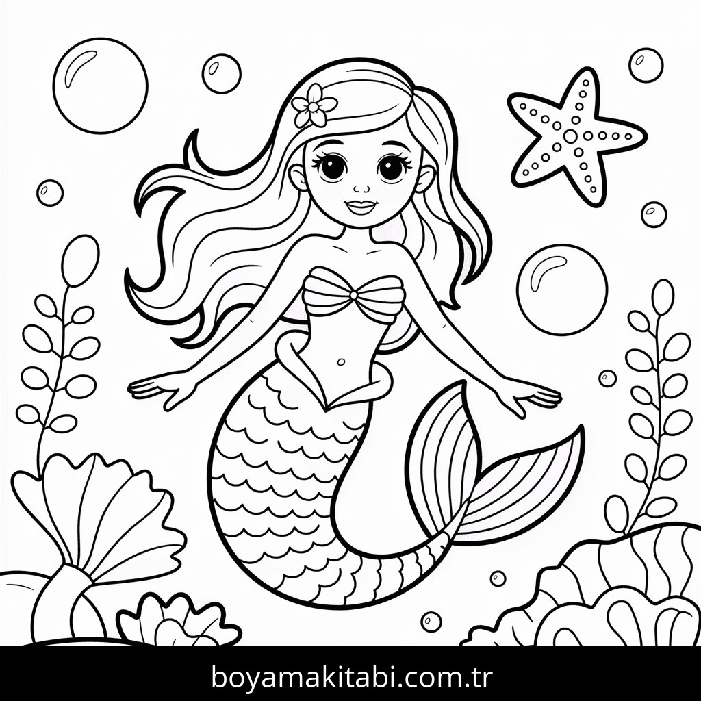 Denizkızı temalı bu boyama sayfası çocuklar için evde etkinlik ve ücretsiz yazdır bir etkinlik sunar. Ücretsiz olarak indirip yazdırabilir, evde keyifli bir boyama zamanı oluşturabilirsiniz.
