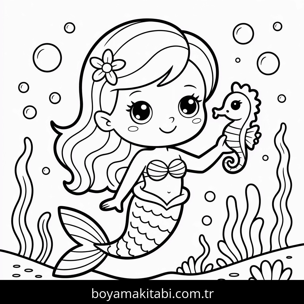 Denizkızı temalı bu boyama sayfası çocuklar için eğitici aktivite ve yaratıcılık bir etkinlik sunar. Ücretsiz olarak indirip yazdırabilir, evde keyifli bir boyama zamanı oluşturabilirsiniz.