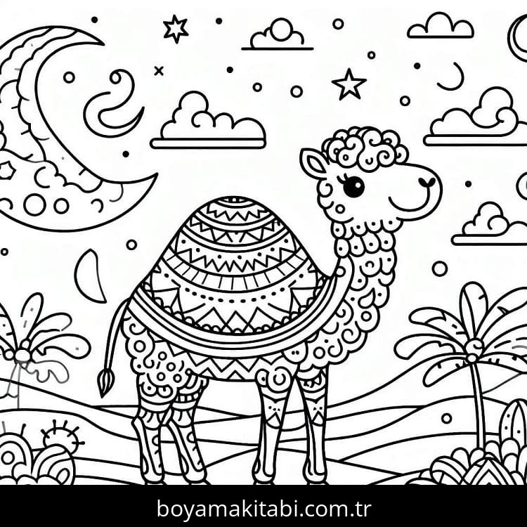 Deve temalı bu boyama sayfası çocuklar için boyama etkinliği ve çocuk aktivitesi bir etkinlik sunar. Ücretsiz olarak indirip yazdırabilir, evde keyifli bir boyama zamanı oluşturabilirsiniz.