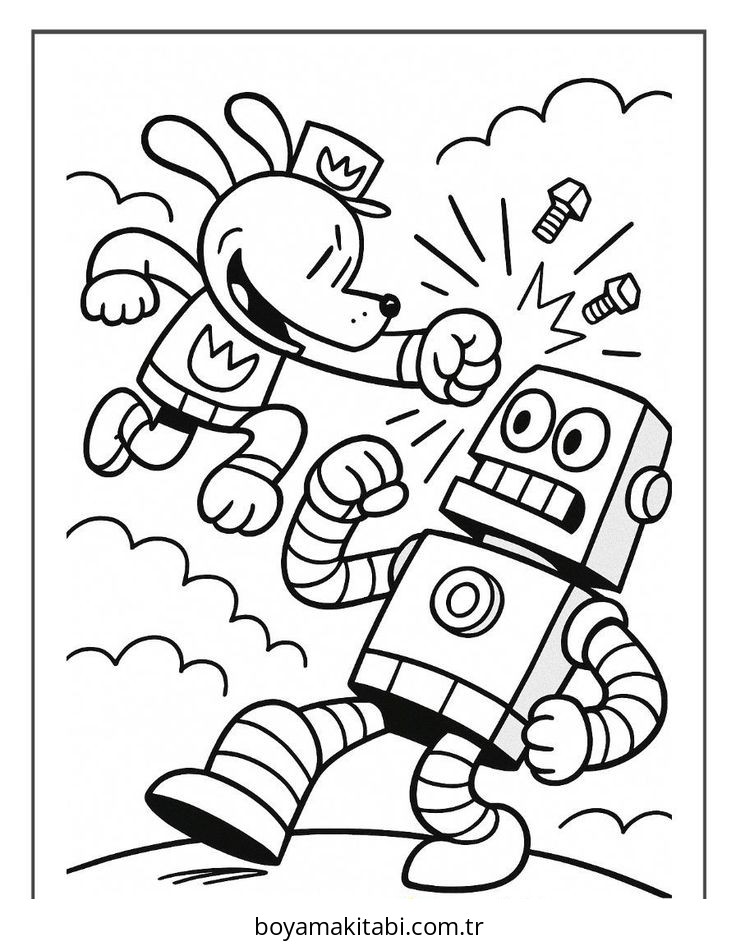 Dog Man temalı bu boyama sayfası çocuklar için çizgi film temalı ve basit çizim bir etkinlik sunar. Ücretsiz olarak indirip yazdırabilir, evde keyifli bir boyama zamanı oluşturabilirsiniz.