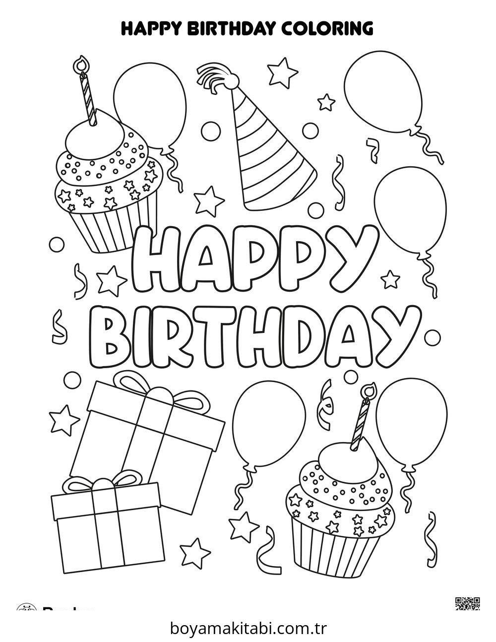 Doğumgünü temalı bu boyama sayfası çocuklar için sanatsal çalışma ve çocuklar için bir etkinlik sunar. Ücretsiz olarak indirip yazdırabilir, evde keyifli bir boyama zamanı oluşturabilirsiniz.