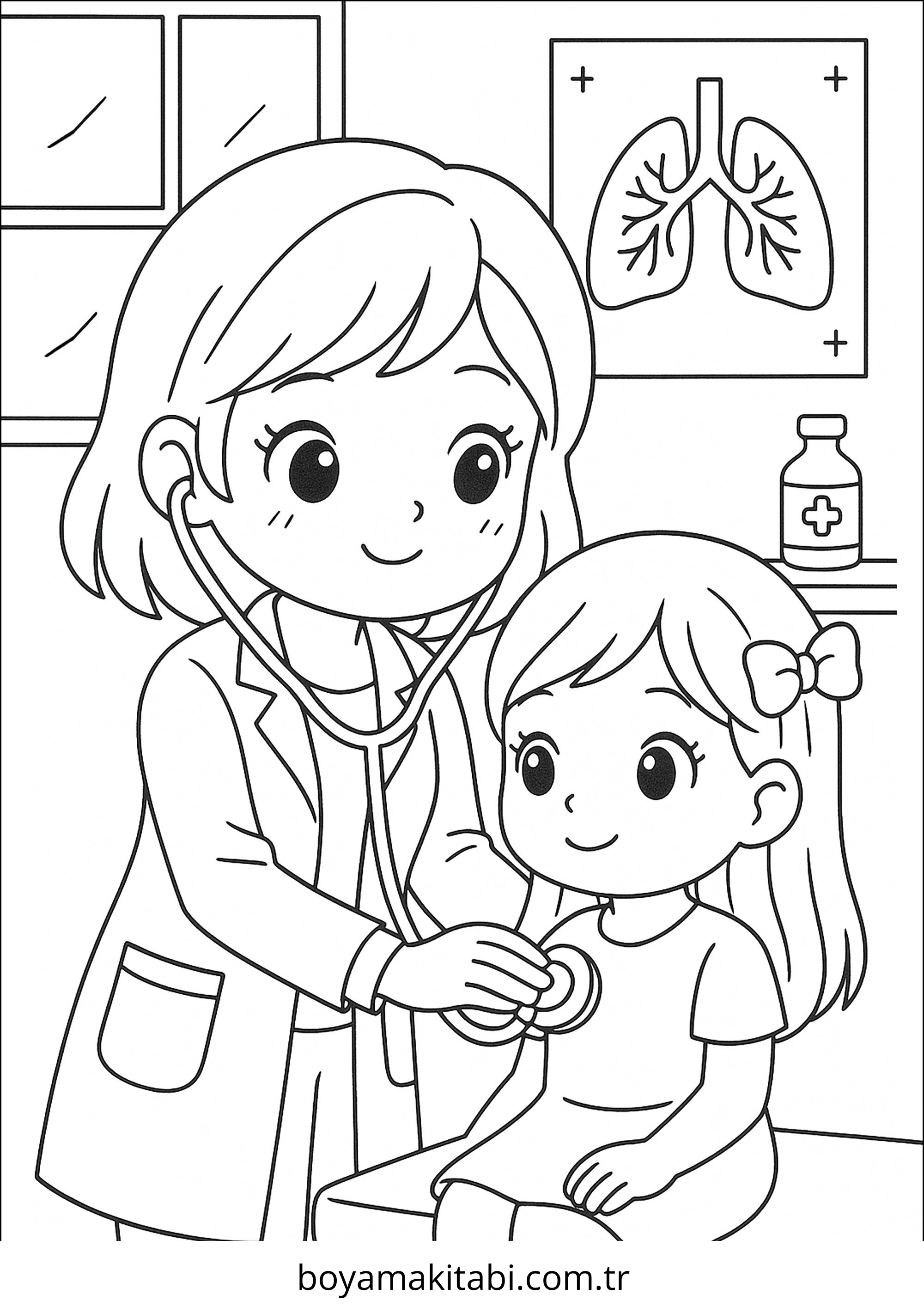 Doktor temalı bu boyama sayfası çocuklar için boyama etkinliği ve çocuk aktivitesi bir etkinlik sunar. Ücretsiz olarak indirip yazdırabilir, evde keyifli bir boyama zamanı oluşturabilirsiniz.