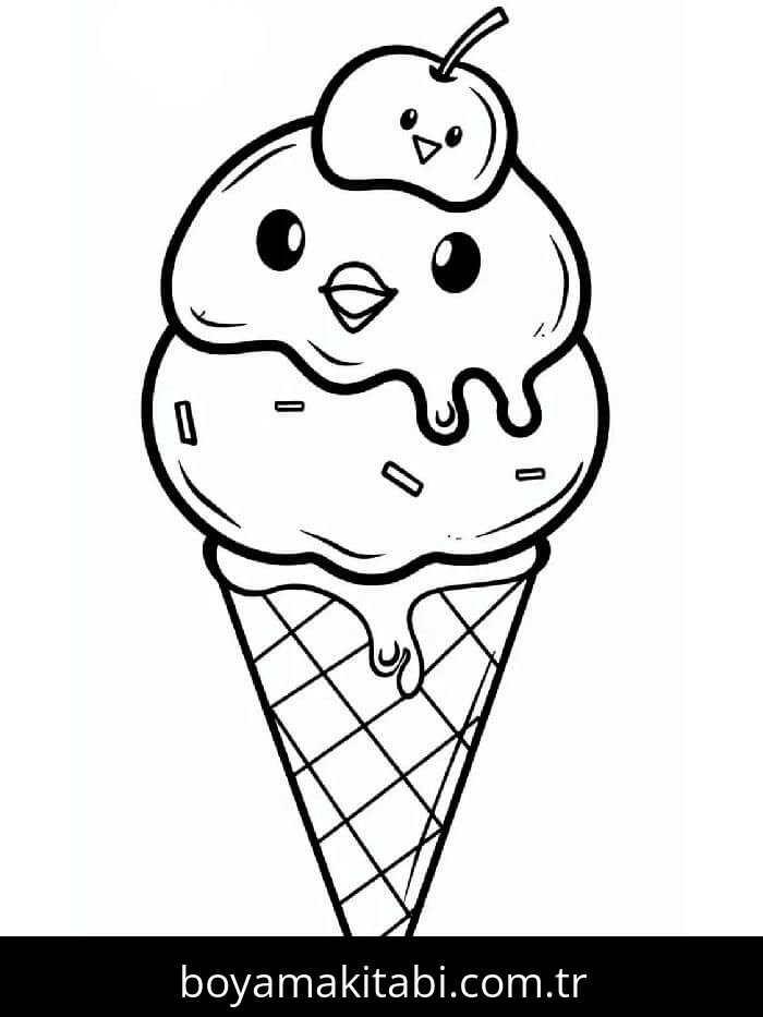 Dondurma temalı bu boyama sayfası çocuklar için el becerilerini geliştirir ve boyama çalışması bir etkinlik sunar. Ücretsiz olarak indirip yazdırabilir, evde keyifli bir boyama zamanı oluşturabilirsiniz.