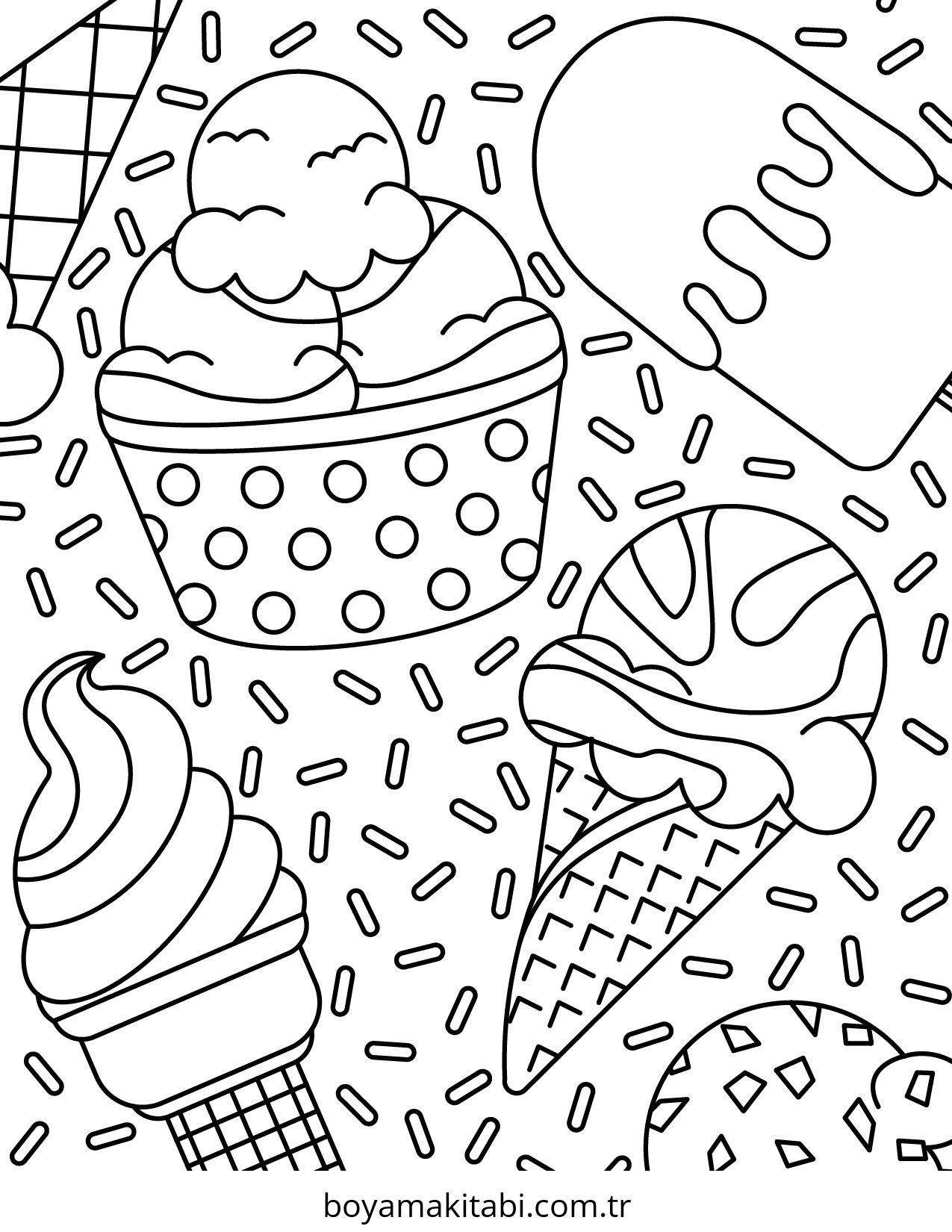 Dondurma temalı bu boyama sayfası çocuklar için boyama etkinliği ve çocuk aktivitesi bir etkinlik sunar. Ücretsiz olarak indirip yazdırabilir, evde keyifli bir boyama zamanı oluşturabilirsiniz.
