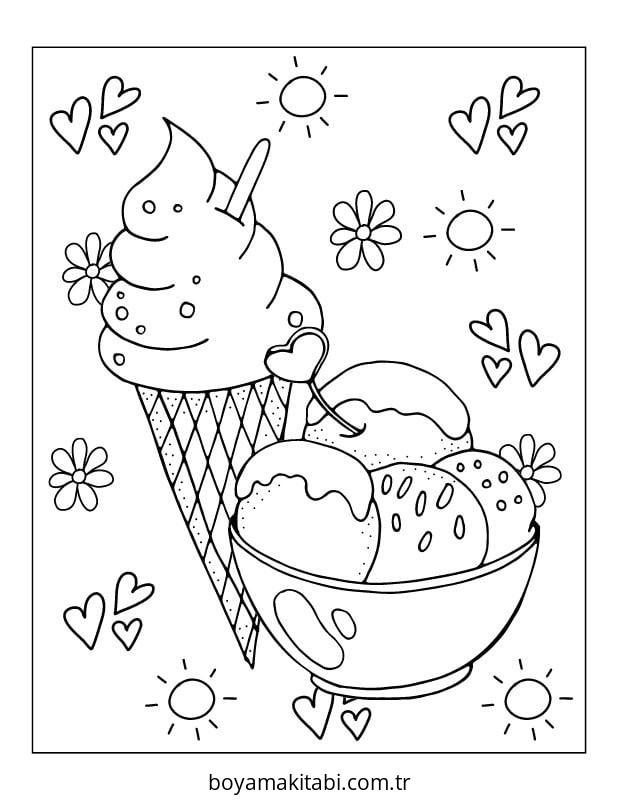 Dondurma temalı bu boyama sayfası çocuklar için çocuklar için ve çizgi film temalı bir etkinlik sunar. Ücretsiz olarak indirip yazdırabilir, evde keyifli bir boyama zamanı oluşturabilirsiniz.