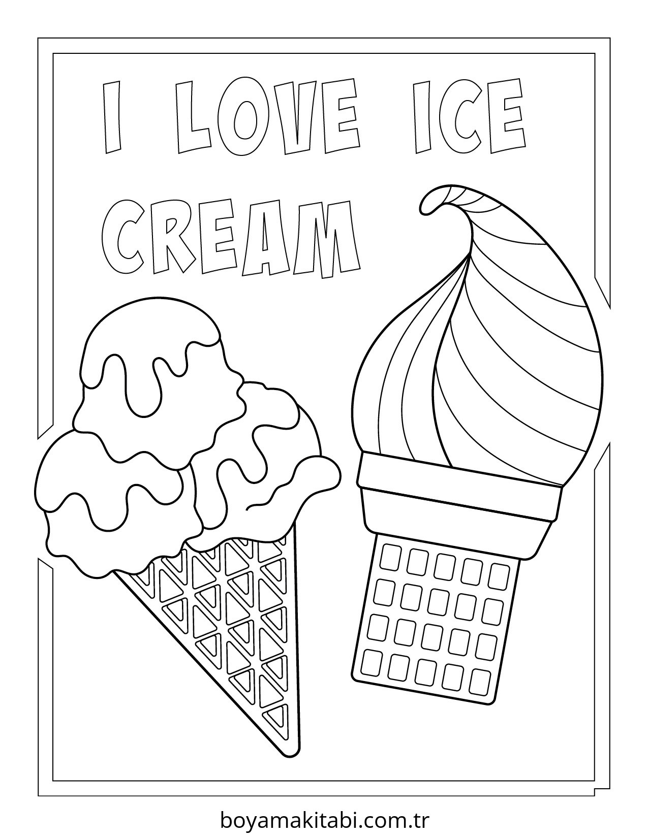 Dondurma temalı bu boyama sayfası çocuklar için çizgi film temalı ve basit çizim bir etkinlik sunar. Ücretsiz olarak indirip yazdırabilir, evde keyifli bir boyama zamanı oluşturabilirsiniz.